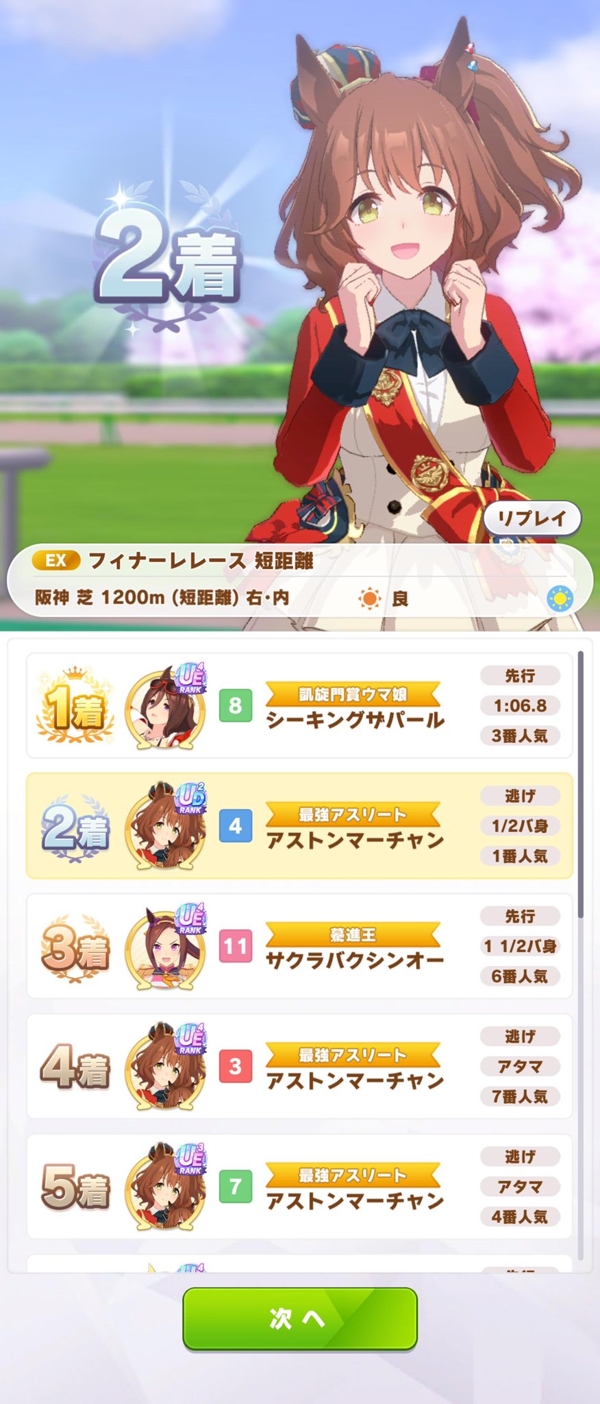 4~12着は報酬一緒なんだし最初からほぼ1着前提の調整なんだろな