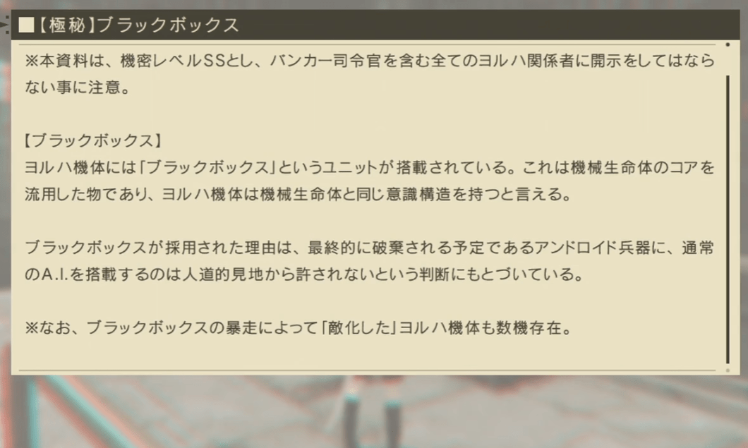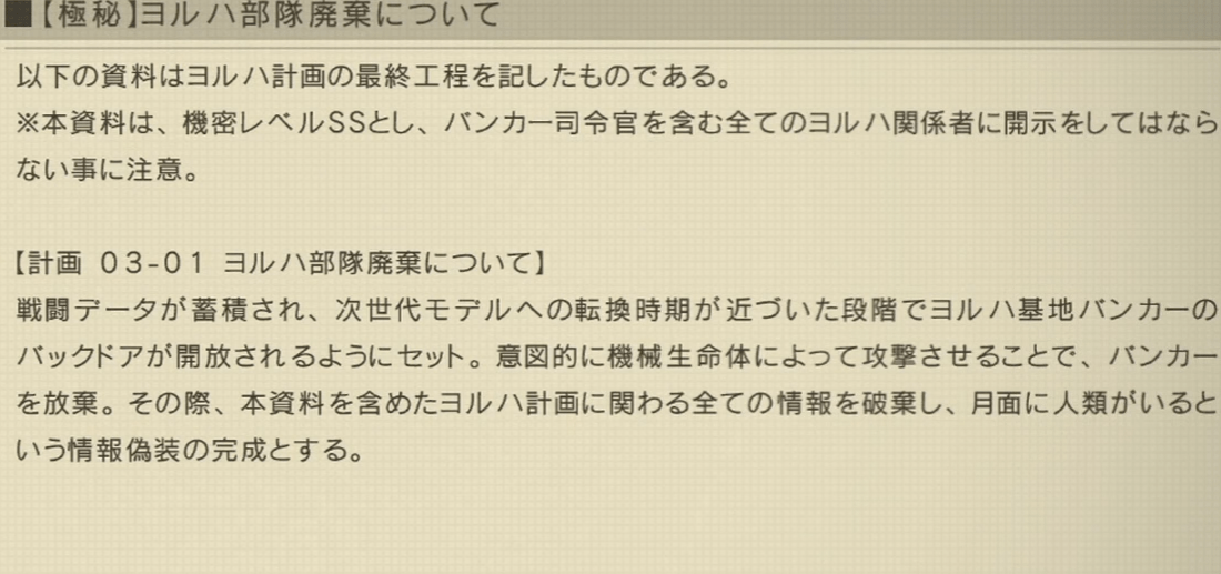 ヨルハ関係者も誰も見れない機密SSの情報を残しておく理由を教えてくれよ