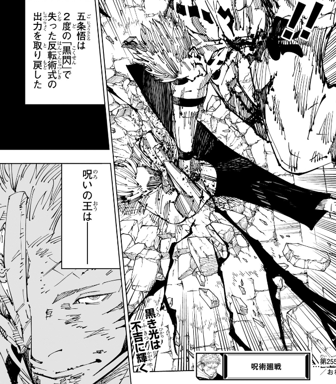 五条は脳の損傷と消耗によって反転術式が覚束なくなって出力が落ちていたが黒閃のおかげでカンを取り戻した