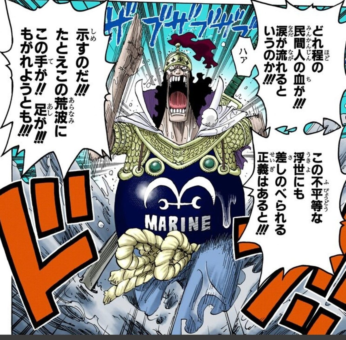 天竜人や政府上層部の理不尽によって無惨な目に遭わされる民の涙を見て叫びを何度も聞いてそのたびに皮が破れて血が出るほど掌をきつく握りしめたり歯を食いしばったり夜な夜な救えなかった民に詫びながら悪夢を見てうなされたり汗だくになって飛び起きたりしてきた過去があったりするのかなと考えるなどしてる