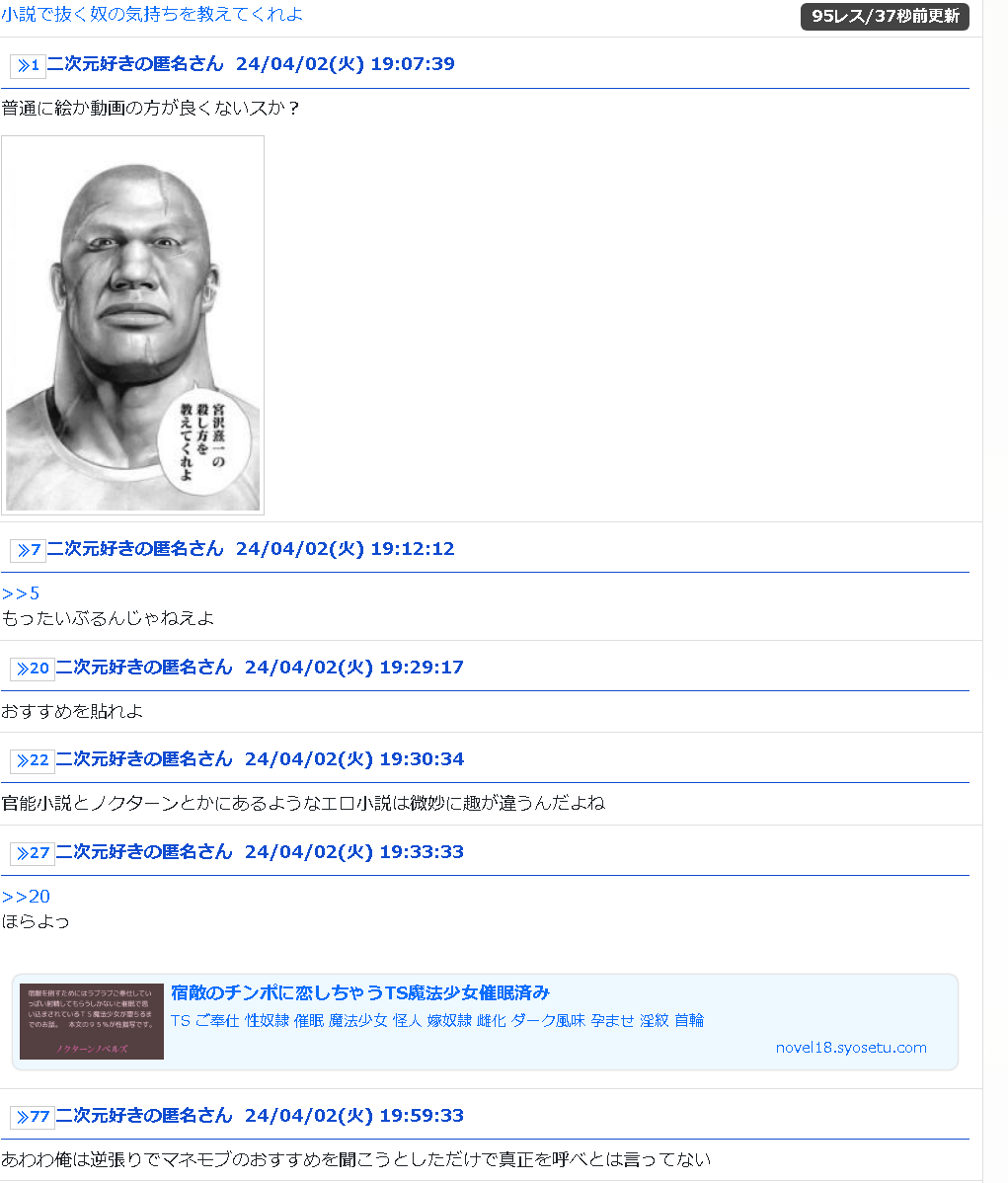 もし本人だとしたらちょっと感性を疑うんだよね怖くない? - 94二次元好きの匿名さん24/04/02(火) 20:09:42