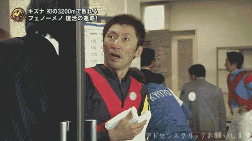因みにその隣の7番にいるのが勝ち馬フェノーメノで、乗ってる人がモノマネをしている蛯名騎手(当時)です