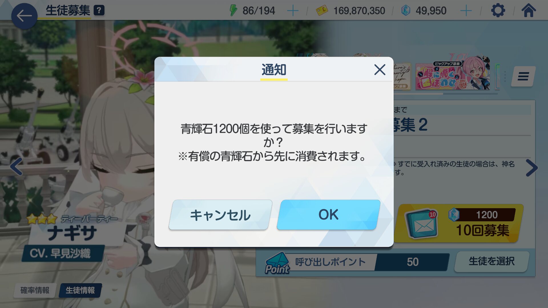 200連でナギサを引けた先生オレ 高みの見物