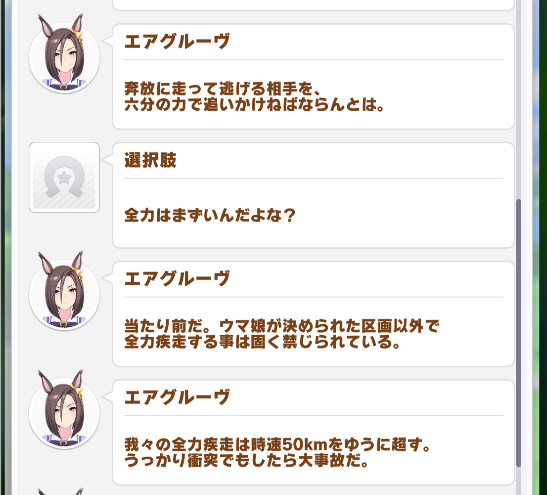 ウマ娘のスピード(生身)と車の衝突とか考えたくねーわ……よってない