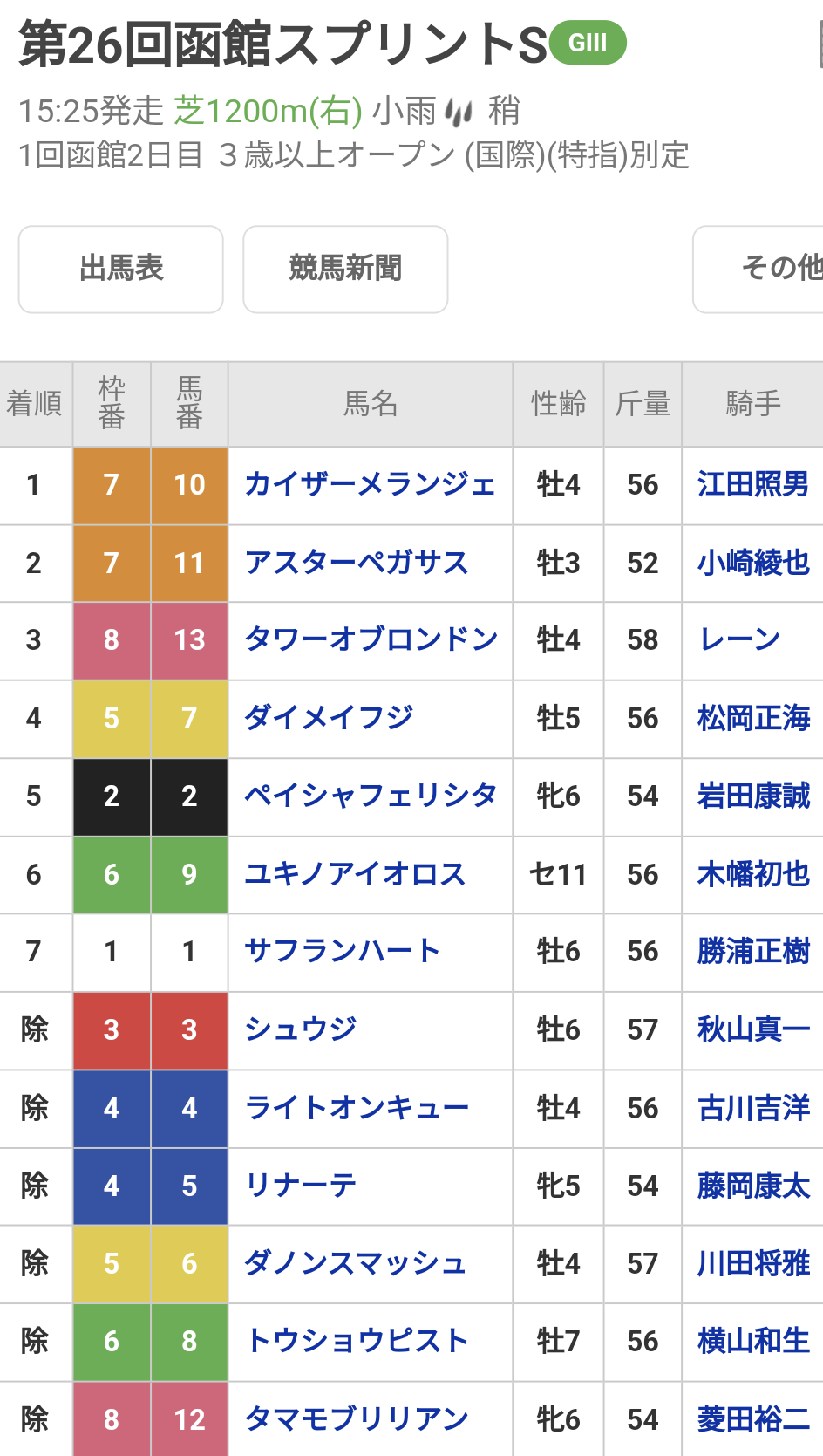調べてみたけど日曜はそんなに除外馬いなかったんだな