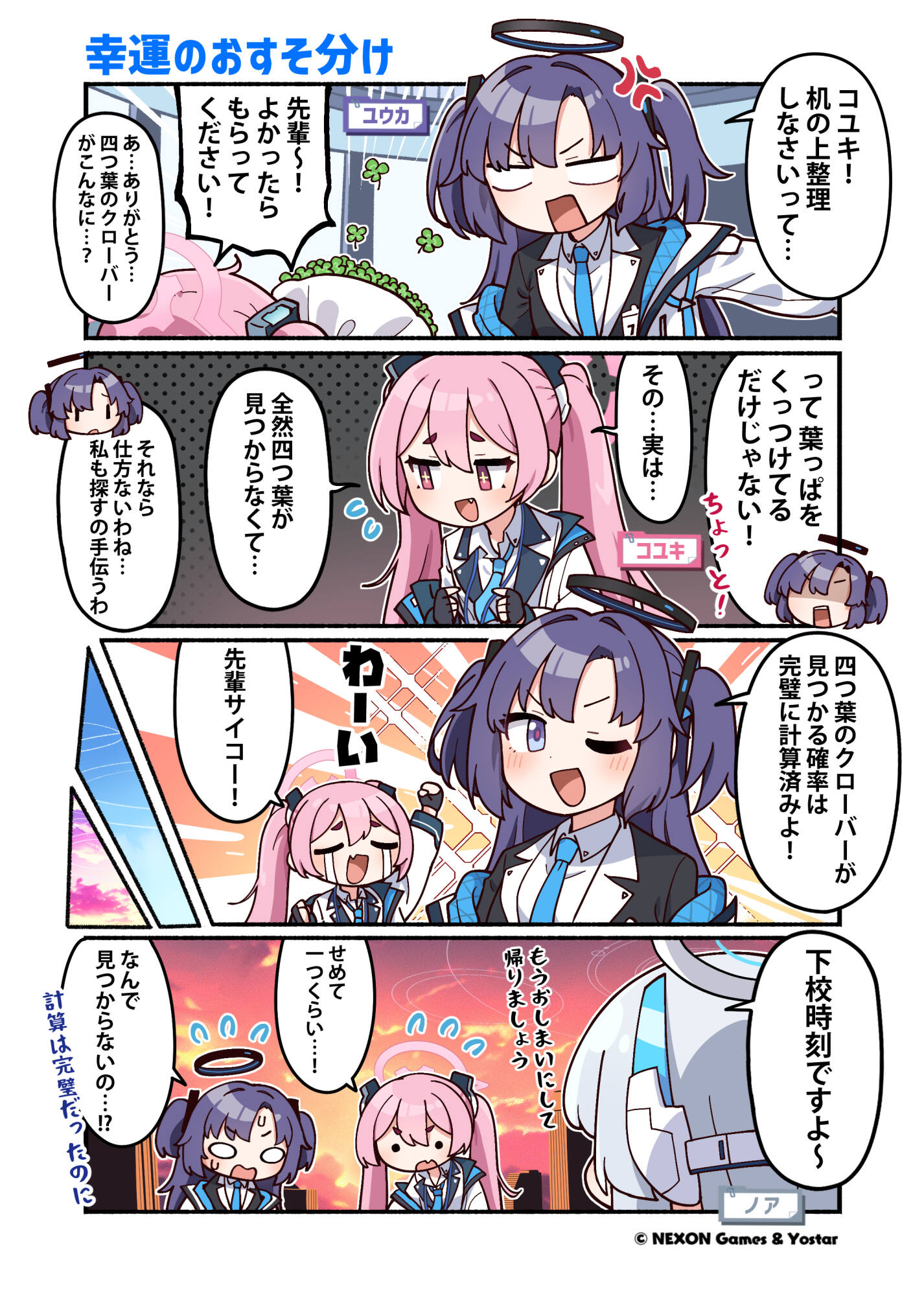 コユキに貰った四つ葉を永久保存するユウカ