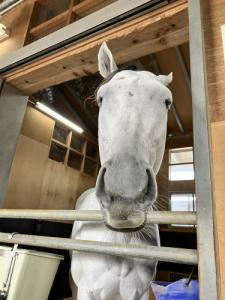 目の模様もあって垂れ目に見えるんだよねこの馬