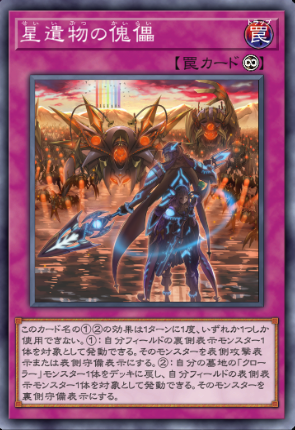 ・サーチの優先度は星遺物に差す影(フィールド魔法)と星遺物の傀儡(永続罠)の2種類が最優先。傀儡がすでに手元にあるのなら星遺物の交心で相手モンスター効果に備えましょう。