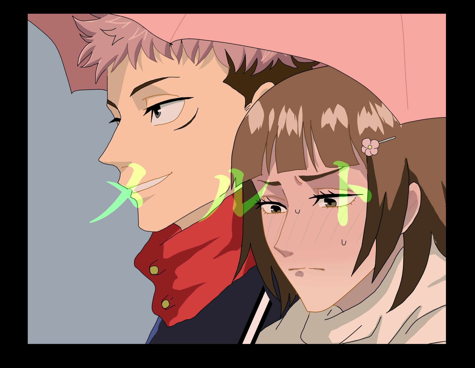 夏油と五条で米津玄師のpale blue が個人的に聞いて欲しい、「黒ずみ出す耳飾り」とかまんますぎてびっくりした