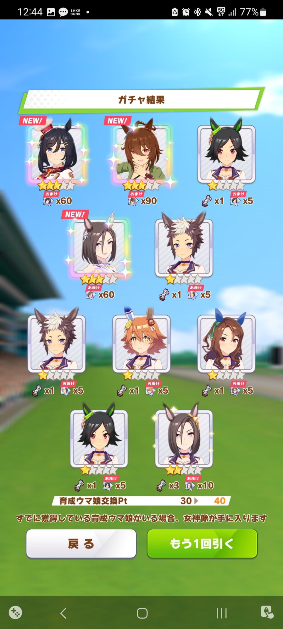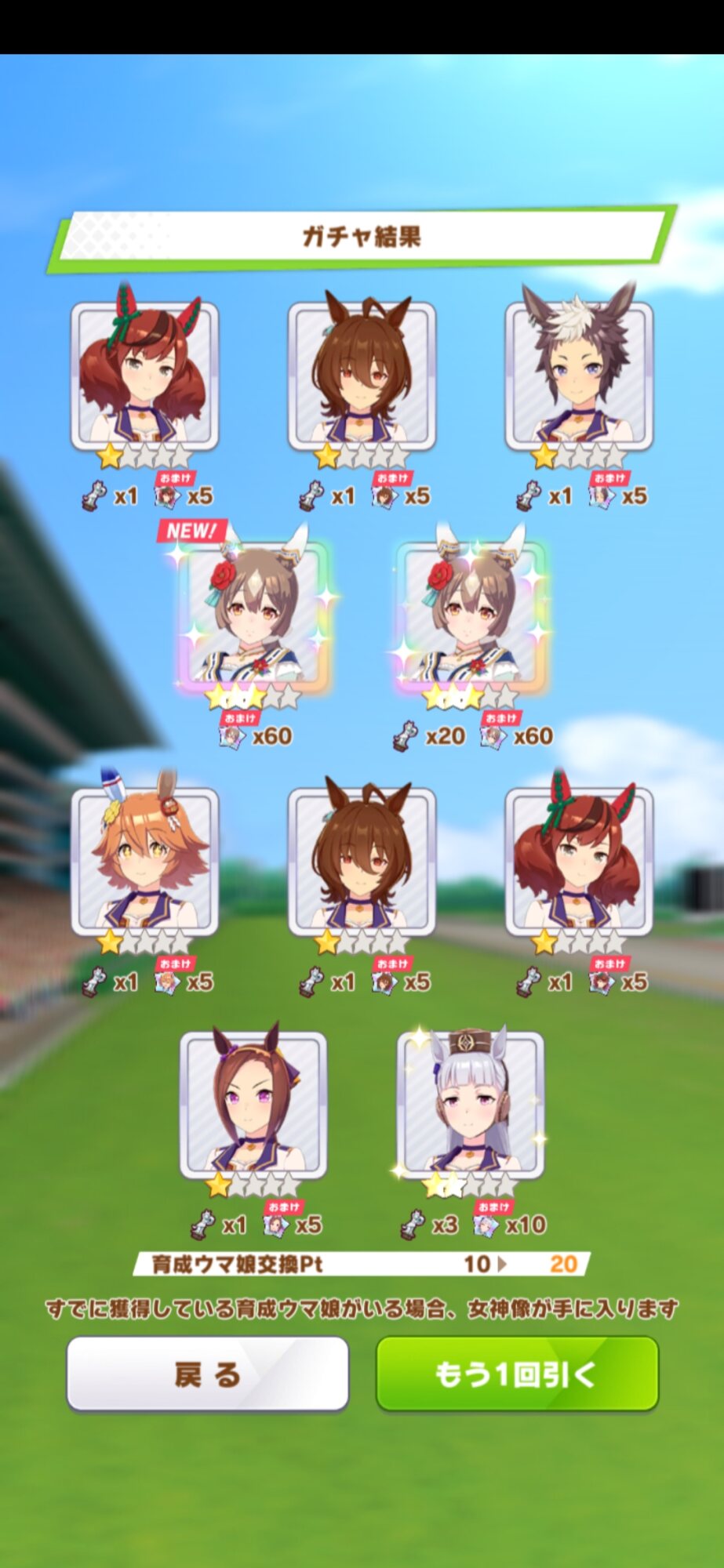 SSは残してないけど10連一回で赤白テイオーどっちも来た時は笑った