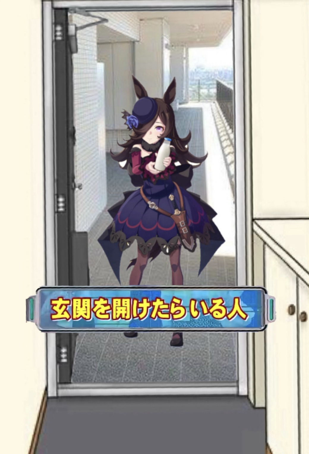 「玄関開けたら」だから、てっきり朝に準備して通勤なり通学なりで「いってきまーす」でドア開けたらそこにライスがいたのかと思ってた