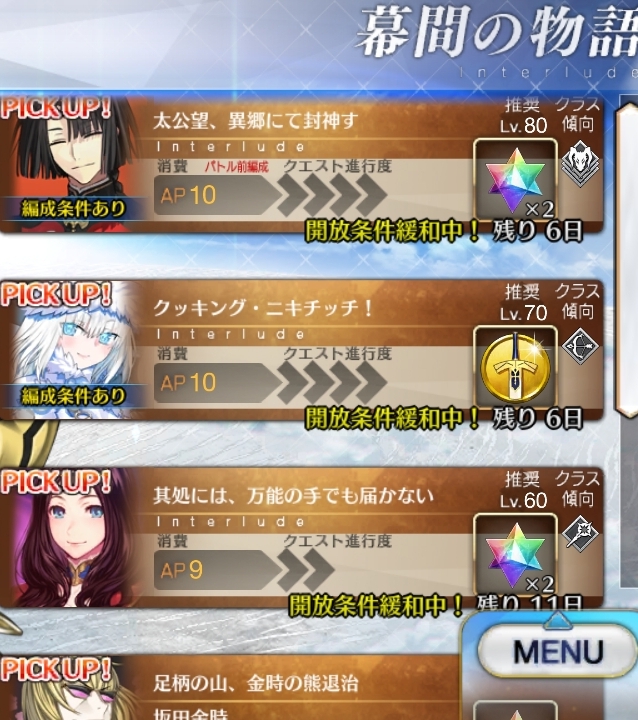 宝具強化用のクエストクリアしないと高難易度クエストと超高難易度クエスト開放されないってのはある