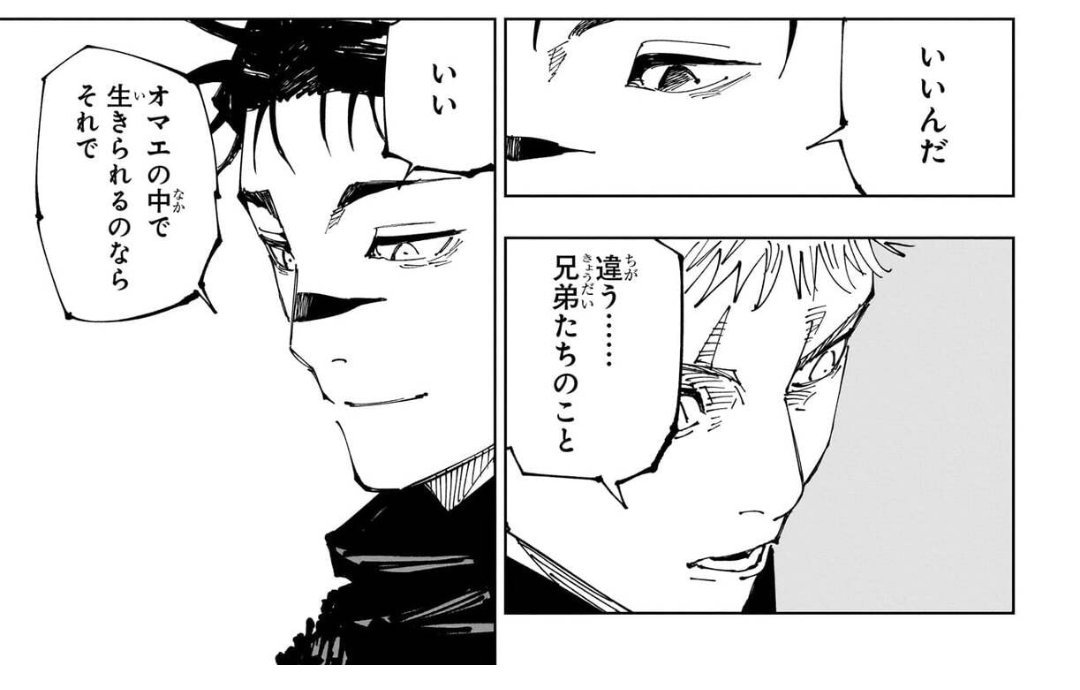 今後宿儺に攻撃したり赤血使ったりするときにお兄ちゃんがチラつくといいな、少しで良いから