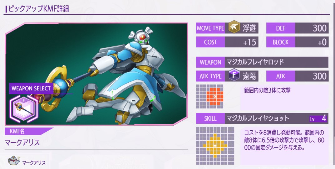 これだけ凶悪だと今後KMFスキル封じの敵がさらに増えるんだろうな…