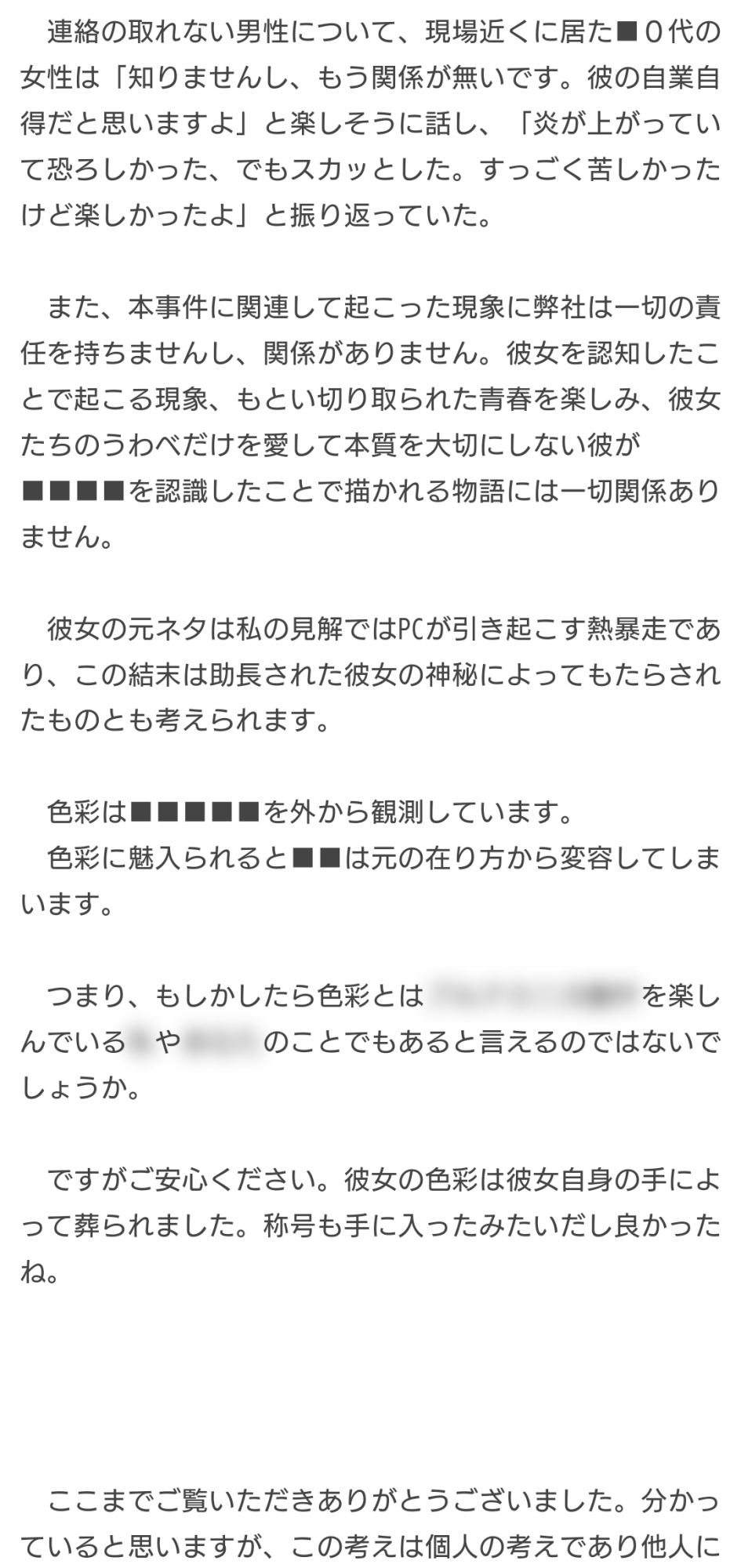 これを読んだ創作者が戒めとするかどうかはともかくとして、別に他人に対してどうこう主義主張を押しつけてる類の作品じゃないって思うんだ - 162二次元好きの匿名さん24/05/19(日) 10:07:06