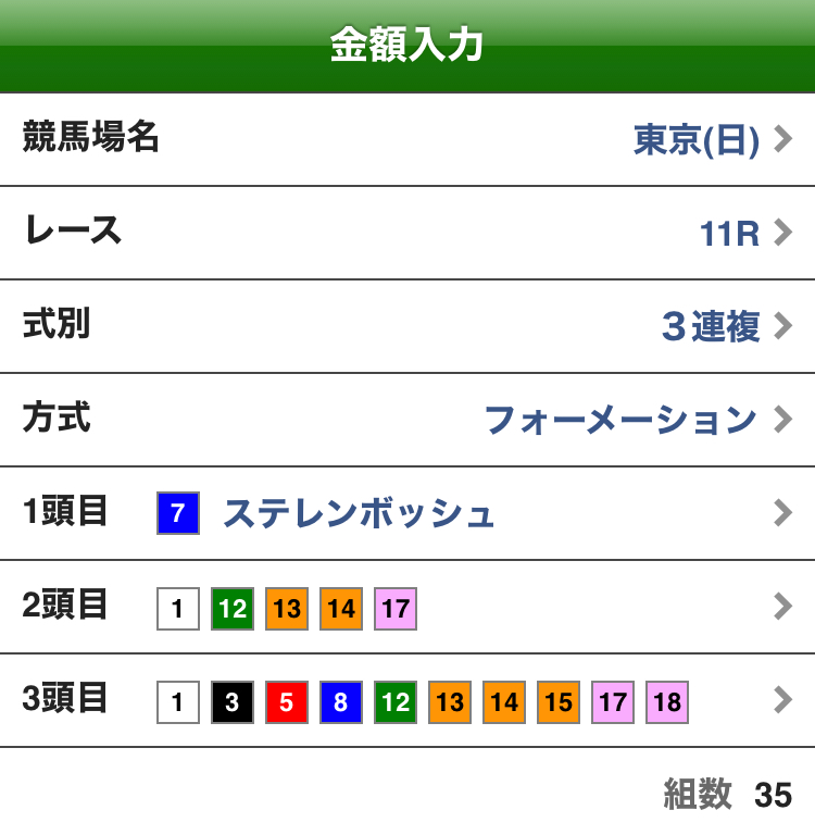 サフィラの単複3000円と馬連ワイド総流し100円ずつ予定