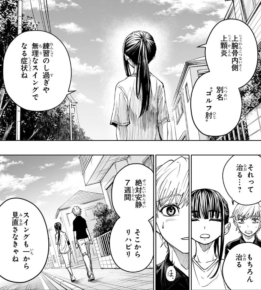 前話での王賀の「そうだよ ゴルフが全てなの」って台詞、あの時の八枝崎との会話と噛み合ってないような気がしてたけど、今回想像以上に王賀のつきものが落ちていて、あの台詞って王賀の胸中を打ち明けたものじゃなくて八枝崎の何気ない比喩によって自分の心の内にピタリと嵌まるものを見つけられたのかなって思った