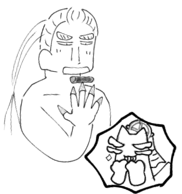 魔虚羅猫「ちょうどいいところに!ご主人また落ち込んでるから慰めてほしいにゃんマコ!」