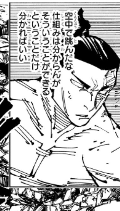 空中で飛んだの東堂だけじゃなくて真希と戦ってる時にお兄ちゃんも指摘してたし今後何かしらのアンサーが出ると思ってる