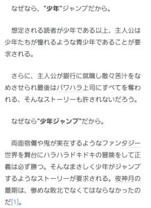 なろうへの偏見より先にジャンプへの偏見でふるい落すのはルールで禁止ですよね