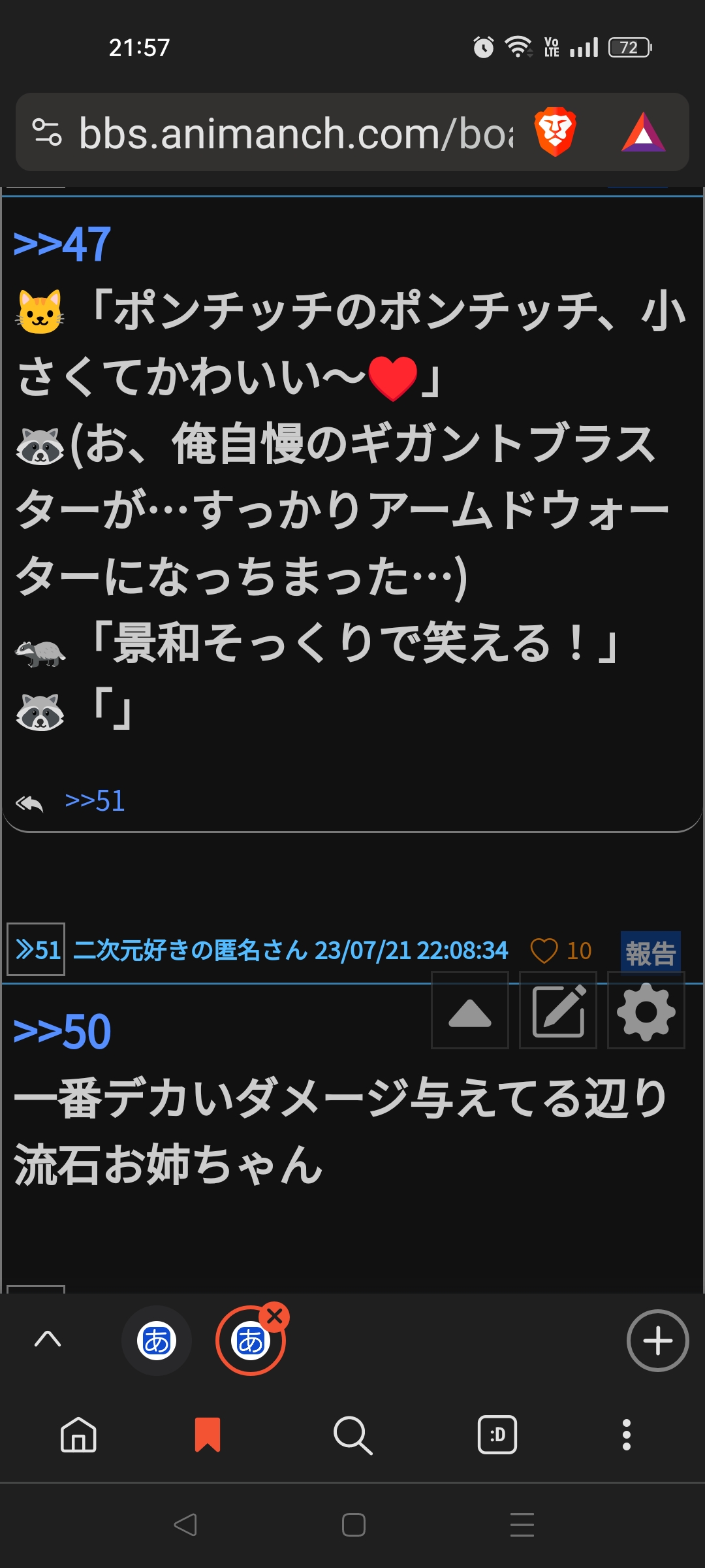 たぬきスレでその二人と風呂入ってたろうが!
