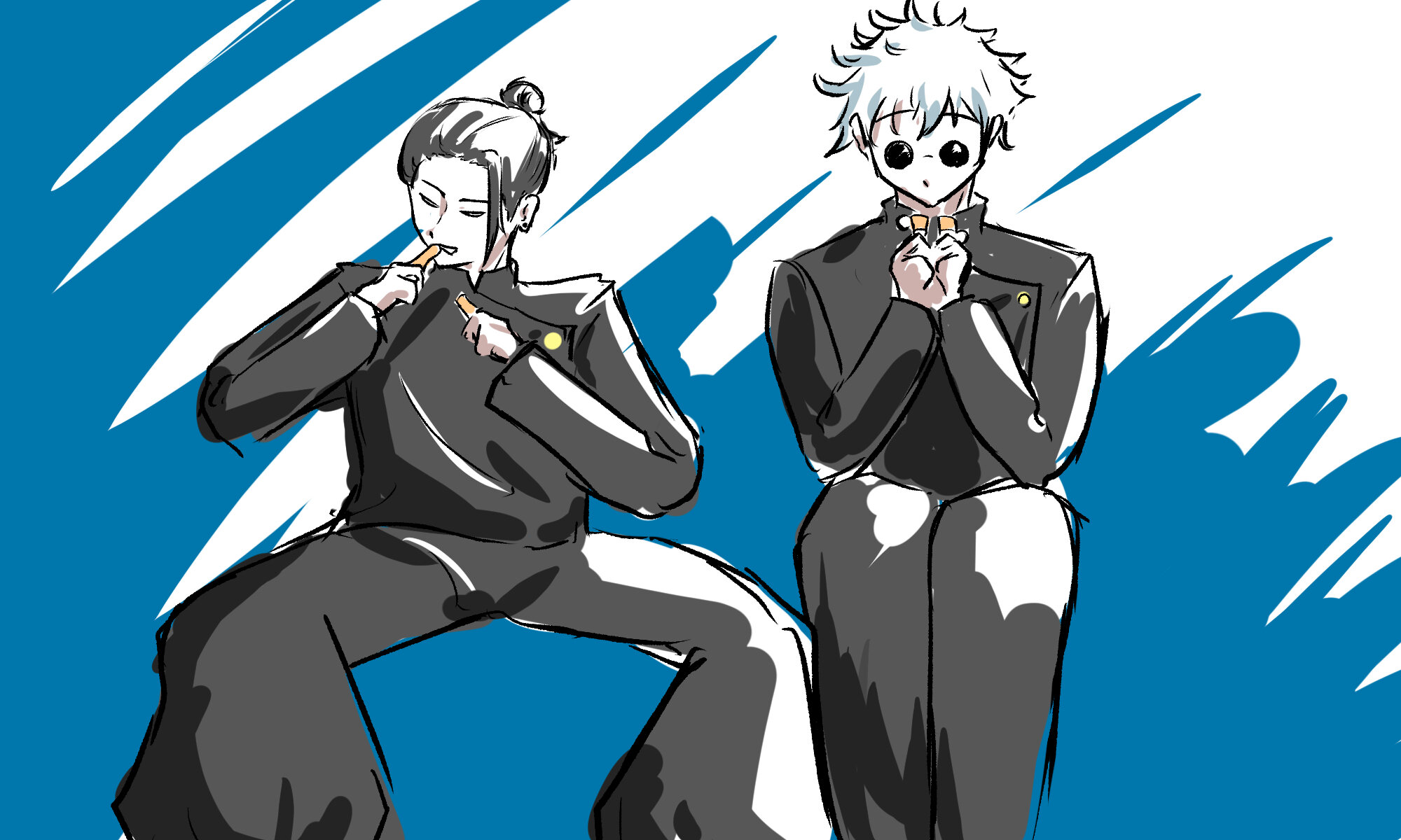 二人で仲良くパピコ分け合って食べてる夏油と五条の絵ください