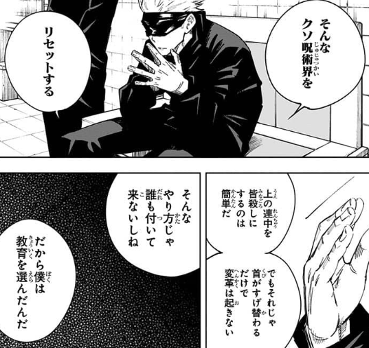 まぁでも生徒が付いてきてくれたとしても五条がこの手段を選ばないといけなくなった展開は辛いわ…