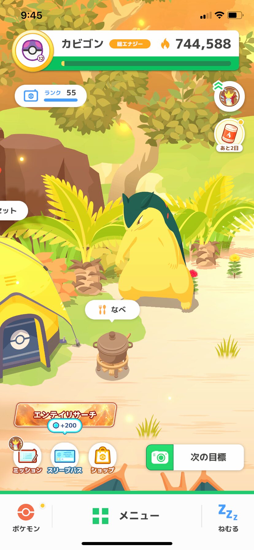 エンテイのおかげでめちゃくちゃ食料が安定したからウキウキでなべの拡張してたら速攻で上限になって泣いた