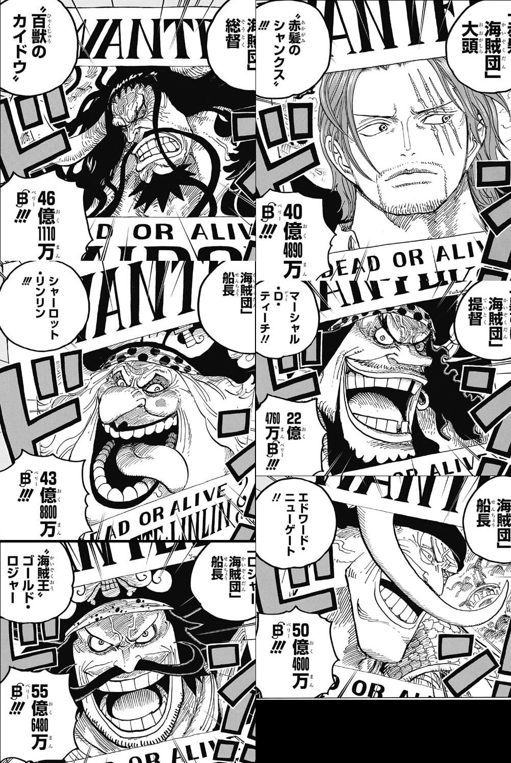 シャンクス、白ひげ、黒ひげ、カイドウ、マムだから前の人気投票そのままかな