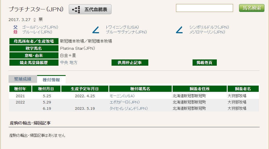 JRAの資料見ると10代後半の繁殖で一発受胎できるってかなりの才能なことが分かる