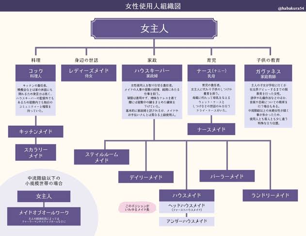 図解 メイド - Shinkigensha Webメイドの仕事。細分化された職種。 給料、余暇、食事、老後。 彼女たちをとり巻く世界や人々。歴史背景。 貴方の知www.shinkigensha.co.jpとりあえず、使用人関連の基礎的な部分はこれで分かる