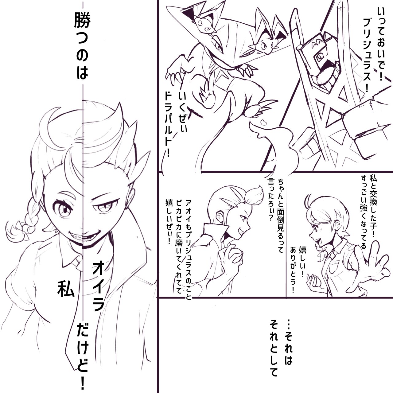 アオイのパルデア思い出語りがアホ濃ゆいのばっかりだしカキツバタとも思い出になるような冒険してほしい、でも自分の脳内の2人がいつもギャグだから