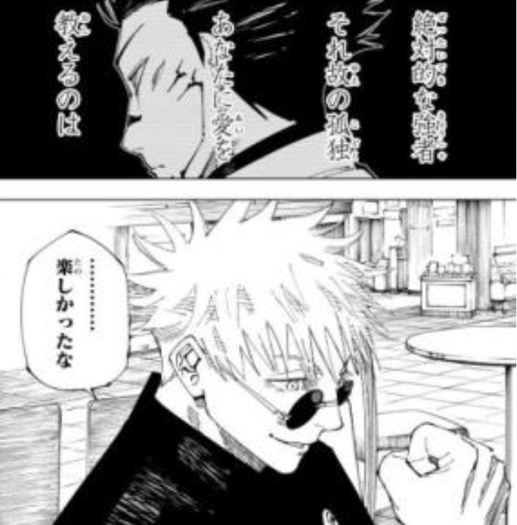 夏油のことで心は南に向こうとしてたし、ずっと満足できなかったけど、それでも未来に向かう意思があったって部分が五条先生の味だと思う。