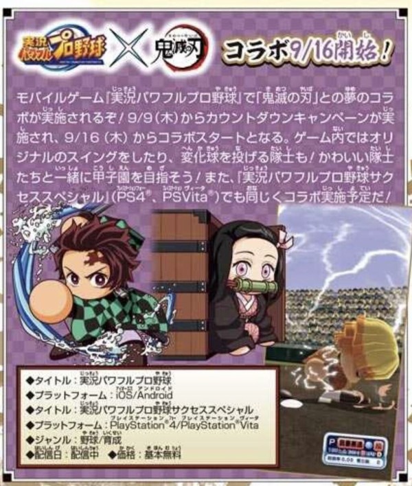 『パワプロアプリ』「鬼滅の刃」とのコラボレーション決定!!株式会社コナミデジタルエンタテインメントのプレスリリース(2021年9月6日 10時32分)『パワプロアプリ』[鬼滅の刃]とのコラボレーション決定!!prtimes.jp - 9二次元好きの匿名さん21/09/06(月) 21:40:00