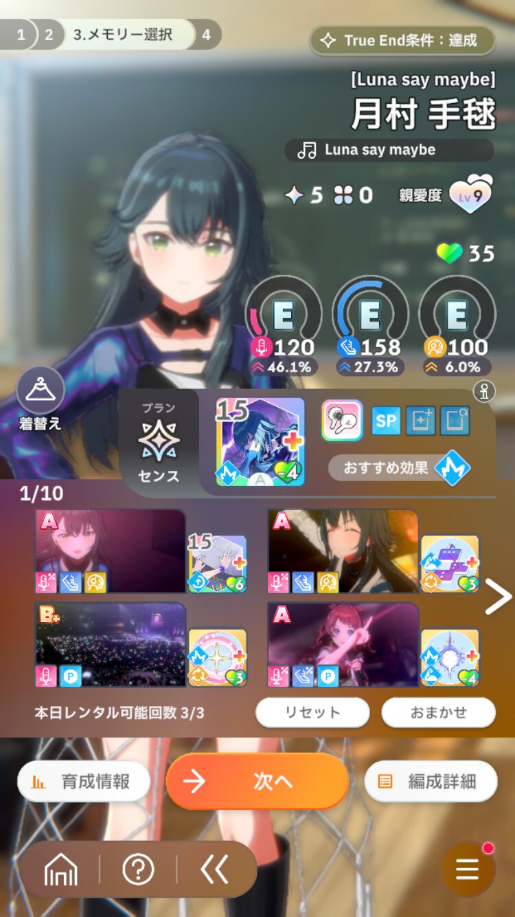 授業は全部出るしレンタルはあさり先生以外のSP upだよ。かなり体力の調整がシビアになる。