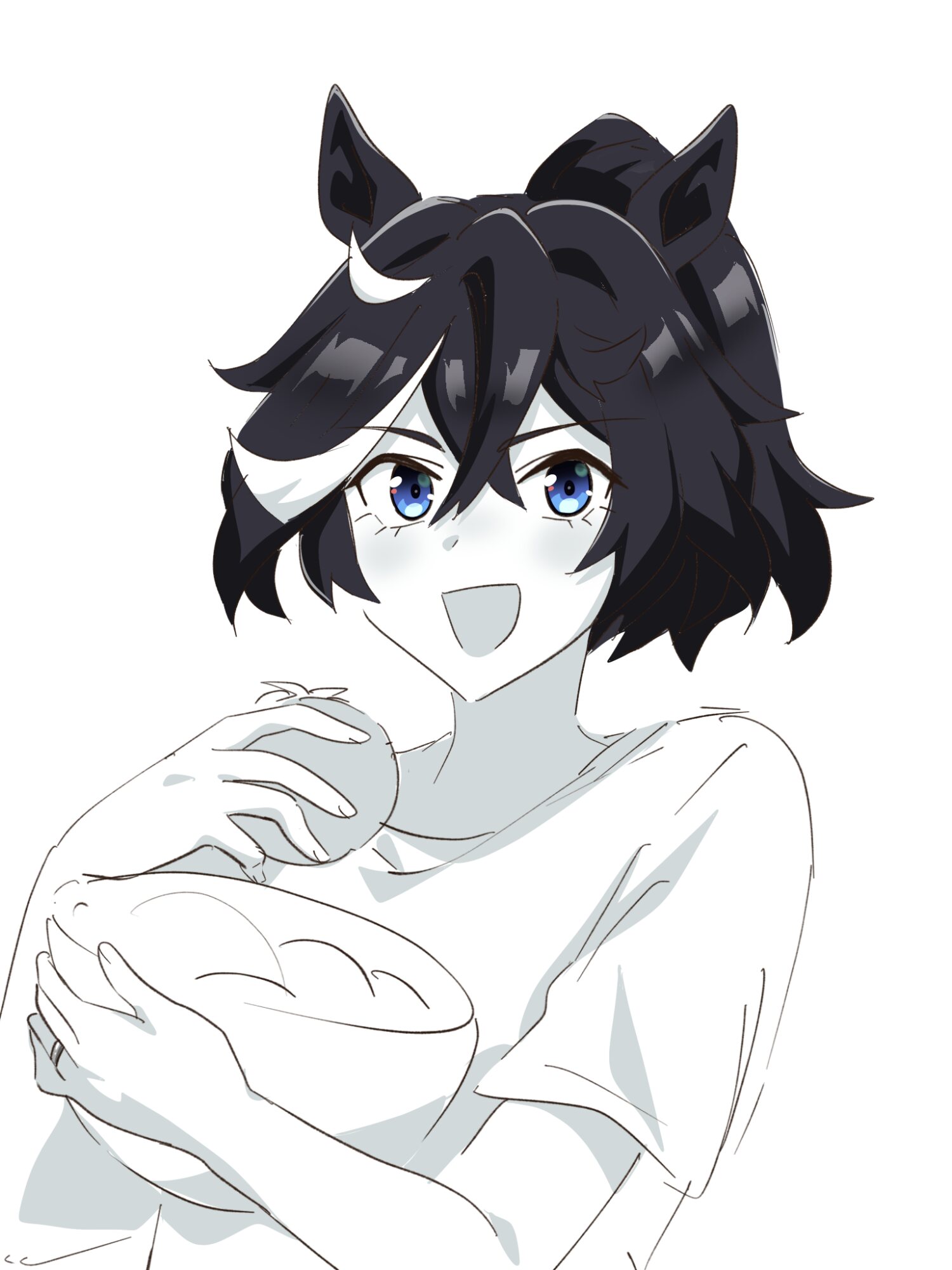 驚いているエースにそう言ったら、耳を前に垂らしながら彼女ははにかんだ。