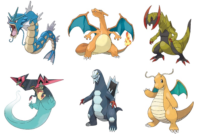 ギャラドス、リザードン、アップリュー、ヌメルゴン、ドラパルト、カイリュー