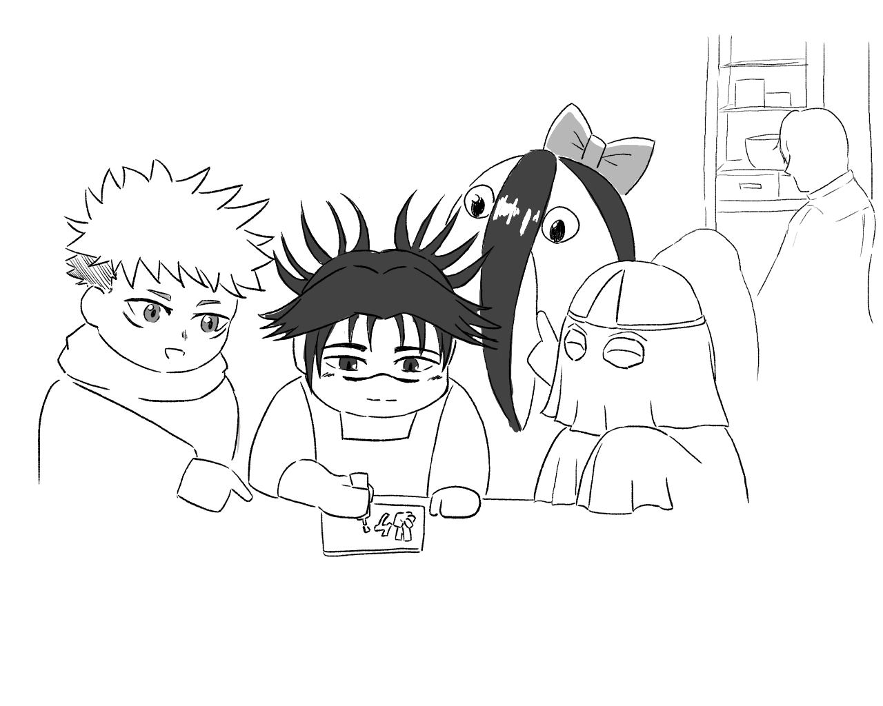 頭上注意の時の脹相が好きなので狭い所で膝抱えてグスッてしてるところに野球拳が来て「おーよしよし」って言いながらおんぶする