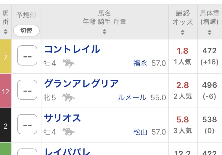 ある程度バラけてた方が誰が勝つか分からなくて面白いけどあまりにも人気がバラバラだと強い馬いないのかなってなるから2〜4強くらいが理想