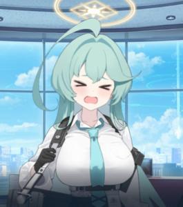 ナギサ似の声の人にやさしく抱きかかえられながら現れるアホ毛とヘイローのある薄緑色のイカ……