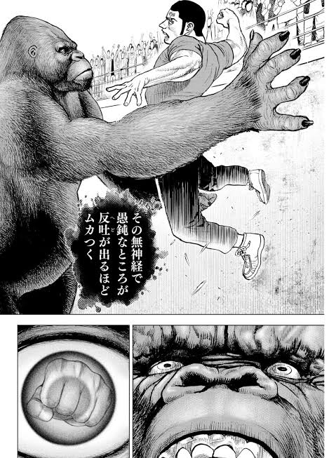 あくまで動物園の1エリアで格闘技の試合でも無いのにギャラリー集まり過ぎだしめちゃくちゃ盛り上がってるしでやっぱ怖いスね猿漫画は