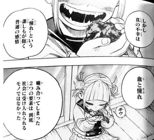 オールマイトみたいになりたい、かっちゃんみたいに、デクくんみたいに、兄みたいに、みんなと対等に、あいつは凄いけど自分は凄くない…いろんなキャラの感情を描いてきたその先でトガちゃんのこの内面と過去が明かされるからその違いと共通点について考えさせられて興味深い