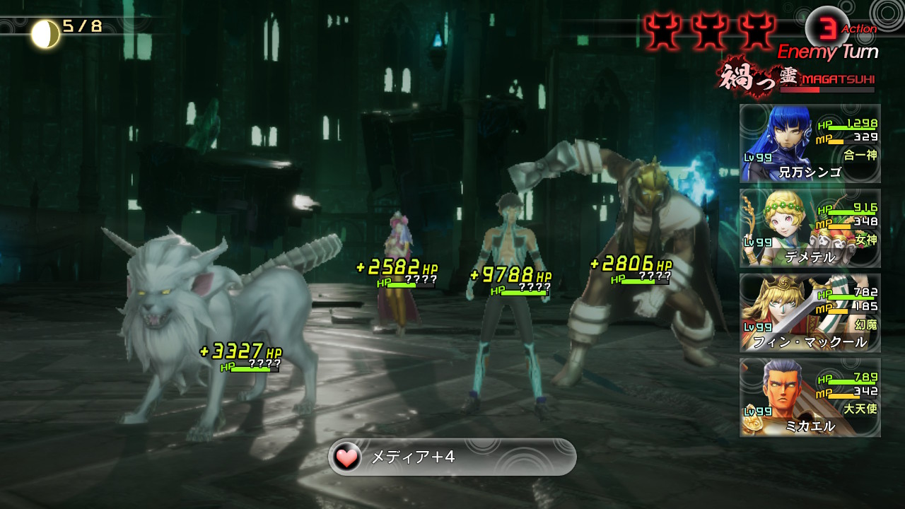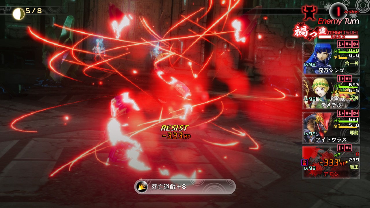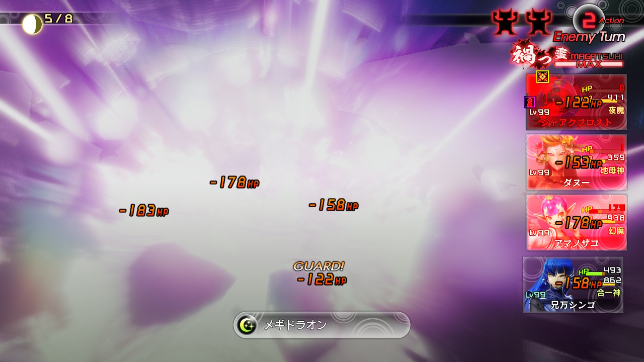 やはり物理耐性じゃなくて反射とかで固めた方が良かったかな?でも手元にはないし。固めすぎると最悪コンボ発動されるし。あとどうあがいても取り巻きにメギドラオンは使われる。casual以来、属性攻撃見てない気がします。殆どメギドラオンばかり。