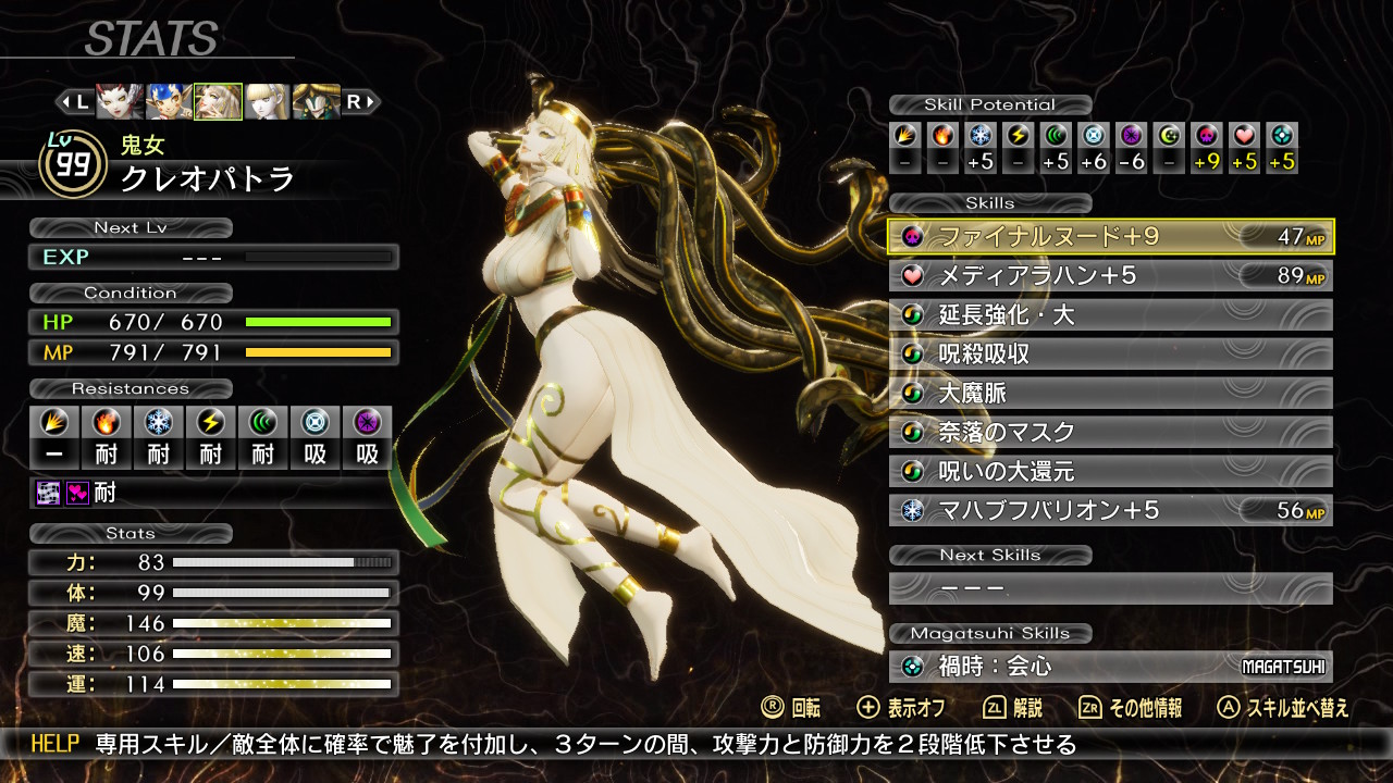 アマノザコをクレオパトラに交代してガルーダをアモンに変えておく。ジャアクフロストはイナンナでいいかな?