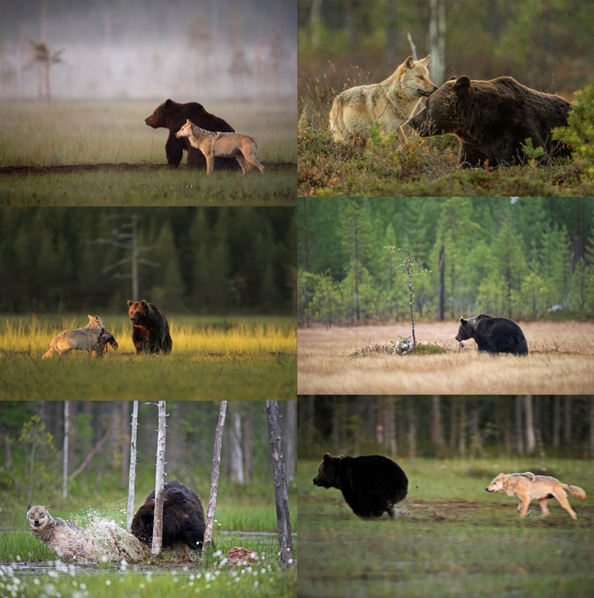 これはフィンランドでの10日間の撮影の間、仲良しだったオオカミとクマ。獲物も共有している