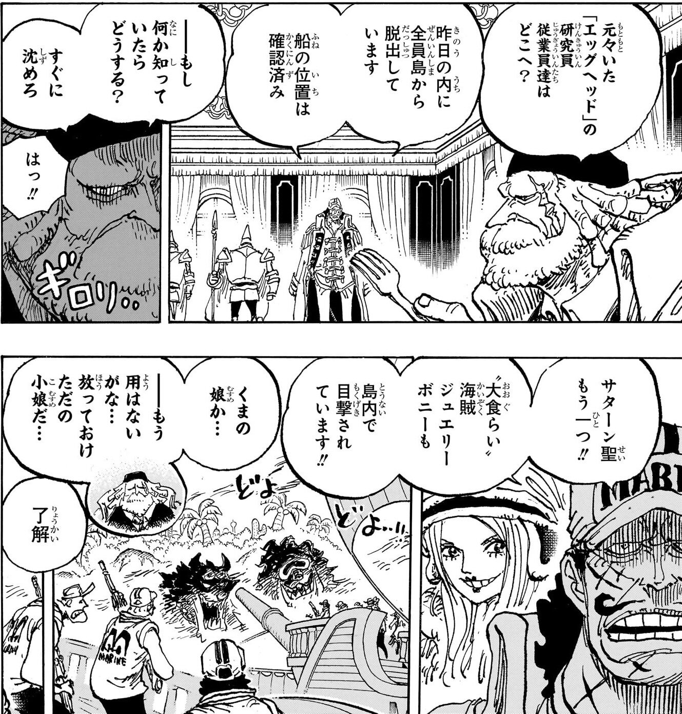 だから最初は放っておけとしたけど、ニカの実物を確認してベガパンクの裏切りを実感してイライラしてたところにボニー本人から刺しにくるわベガパンク本人が登場するわで「世界政府に逆らったから一番苦しめて殺そう」な流れで暴露だった