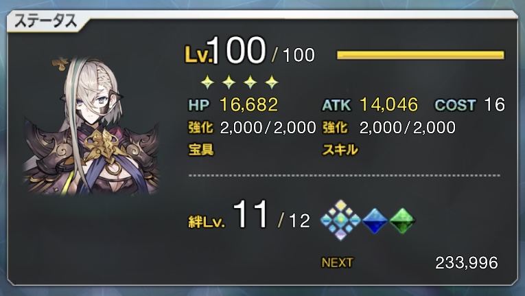 ダメージ前バフに加えて範囲が広い悪特攻、色バフ2種、攻撃バフ、無敵貫通3T、強化解除耐性3T、NPチャージ30%