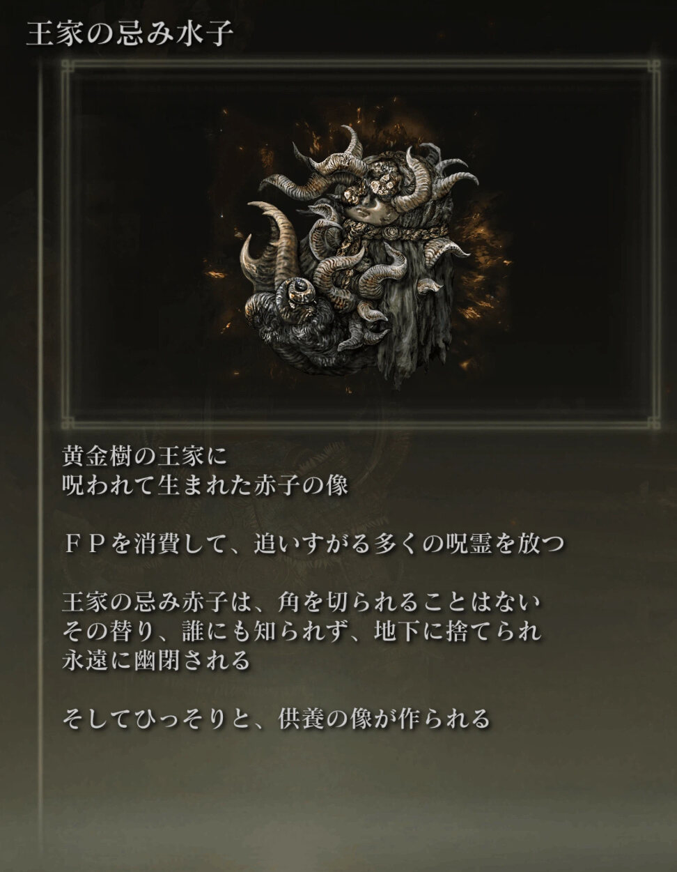 自分自身だから言うはずもないんだけどラダゴンに対してゴッドフレイみたいに我が王って言ってるテキストひとつもないんだなァ…やはりマリカにとっての王はゴッドフレイただ1人なんだ 愛情が深まるんだ