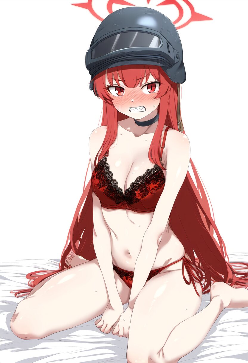 おぉ~。髪と下着と照れ顔で真っ赤っか♥️