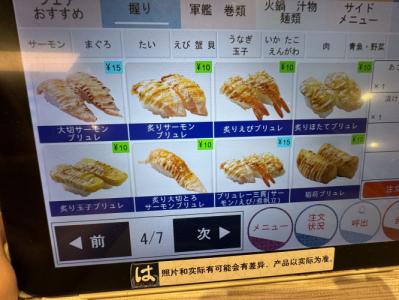 考えても仕方がないので、ブリュレを含む数品を注文してみた。音もなくレーンを走り来る寿司たち。